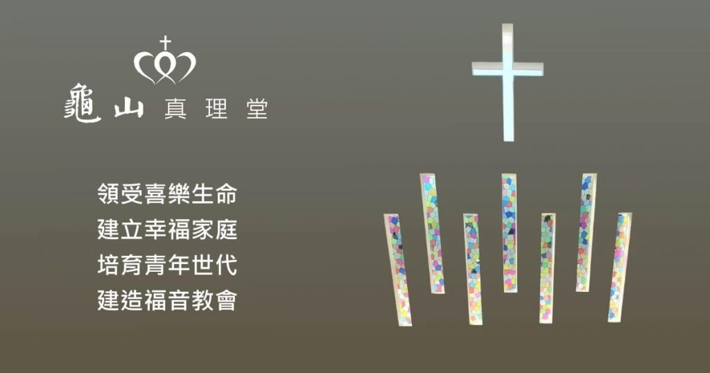 龜山真理堂的使命:領受豐盛生命、建立幸福家庭、培育青年世代、建造福音教會。希望在桃園龜山能不斷的領人歸主,使福音廣傳,建造福音的教會,完成大使命。
